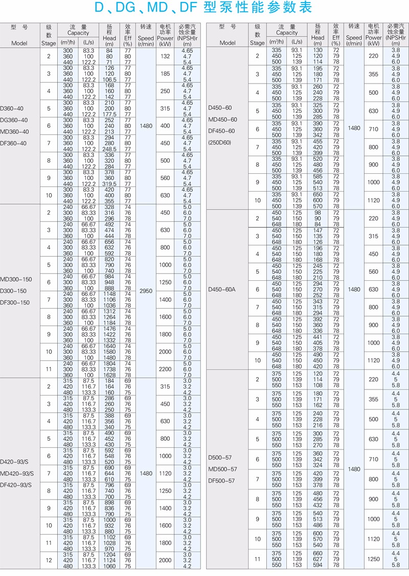 MD型高吸程單吸多級耐磨泵是在D型泵基礎上改進設計的一宗耐磨多級離心泵。MD型泵高效節(jié)能,耐磨性好,壽命長,特別適用于礦山排水,輸送固體顆粒含量不大于1.5%(顆粒直徑小于0.5mm)的礦井水及其他類似液體,液體溫度不高于80℃。